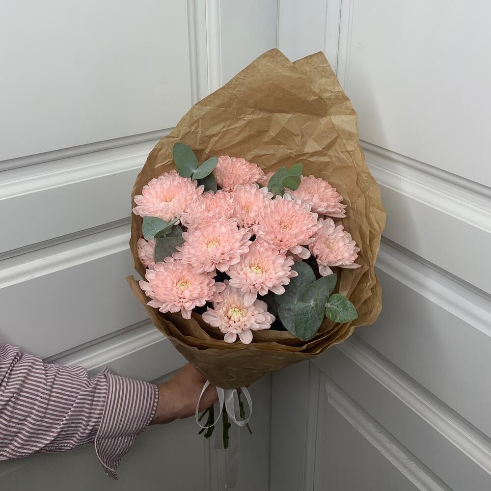 Кулек из розовой хризантемы с ароматным эвкалиптом
