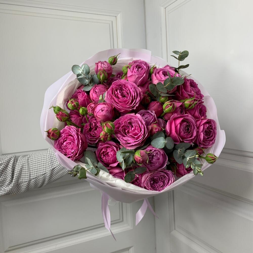 Моно-букет из пионовидных роз и ароматного эвкалипта