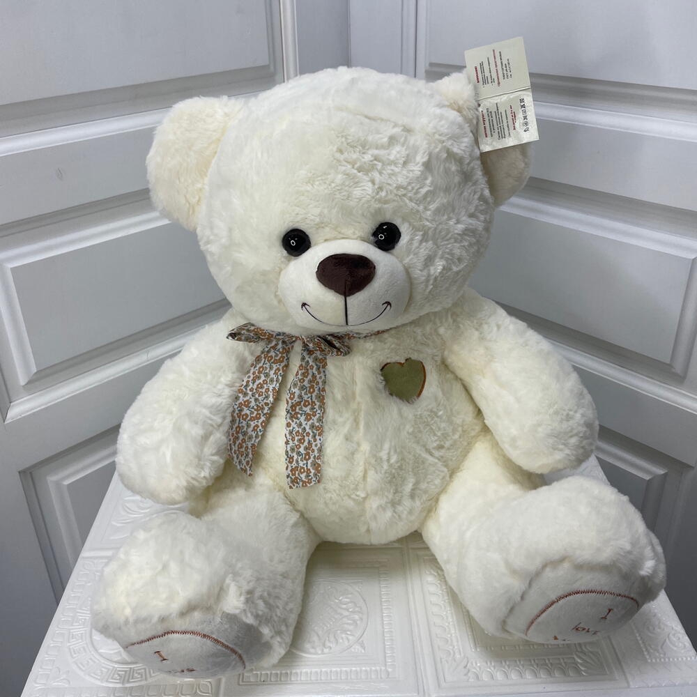 Мягкий белый мишка с цветочным бантиком